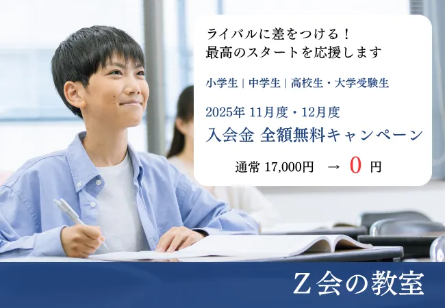学びのサポートを担う「Z会の教室」では、11月と12月の新規入会者を対象に、嬉しい入会金無料キャンペーンを実施しています。通常、17,000円(税込)の入会金が全額免除されるこの機会は、将来を見据えた学びを始めるための絶好のチャンスです。