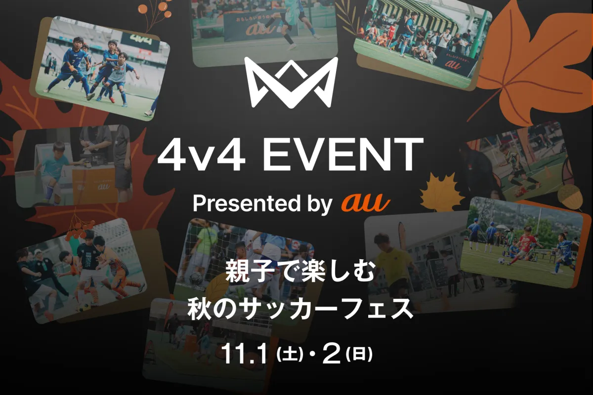 2025年11月1日(土)・2日(日)、たまプラーザ テラスで開催される「4v4 EVENT Presented by au」は、親子で楽しむ新感覚のサッカーイベントです。本イベントは、サッカー界のスター本田圭佑が考案した4人制のサッカー「4v4」を気軽に体験できる絶好の機会で、小学生のお子さんとその親が一緒に楽しむことができます。