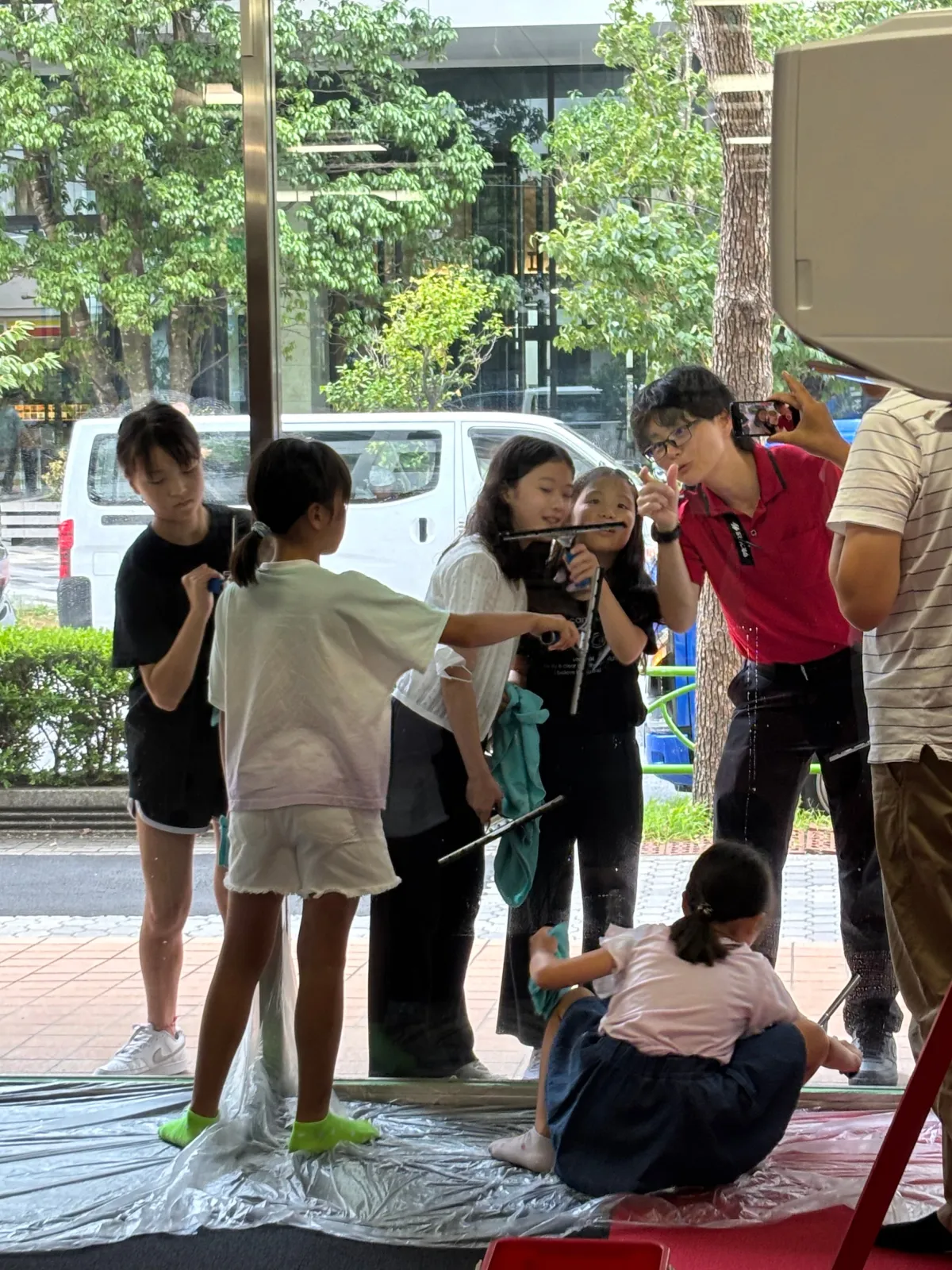 次に、プロの掃除技術を体験できるコーナーでは、参加者が実際にスクイジーを使って窓ガラスを掃除する経験を通じて、掃除の楽しさを実感できる機会が提供されました。