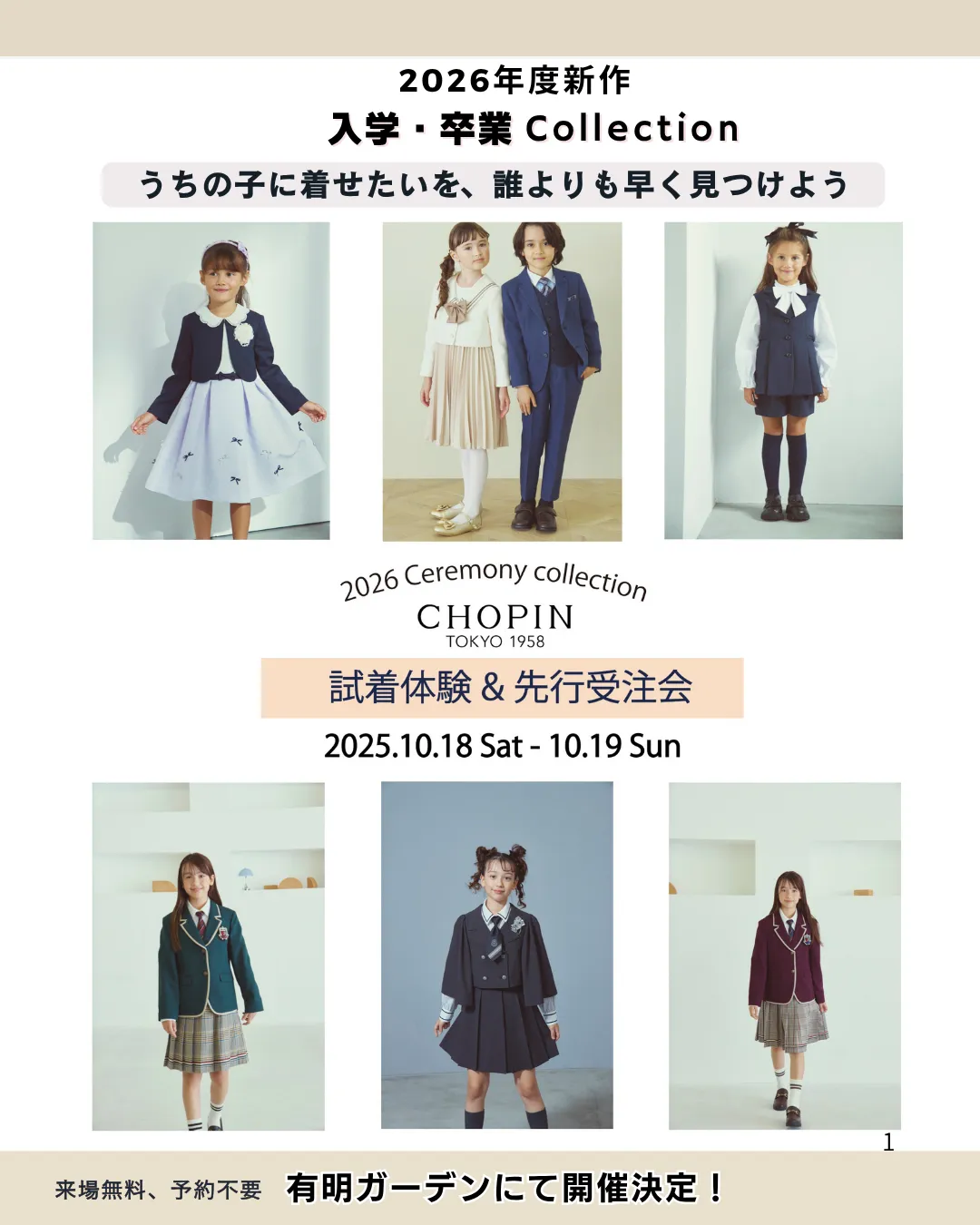 東京・有明ガーデンにて、2025年10月18日(土)と19日(日)の2日間、キッズフォーマルブランド「CHOPIN(ショパン)」の2026年新作入学・卒業式服コレクションの試着体験および先行受注会が開催されます。このイベントは、フォーマルウェアに対する期待が高まる「ハレの日」をより特別にするための絶好の機会です。