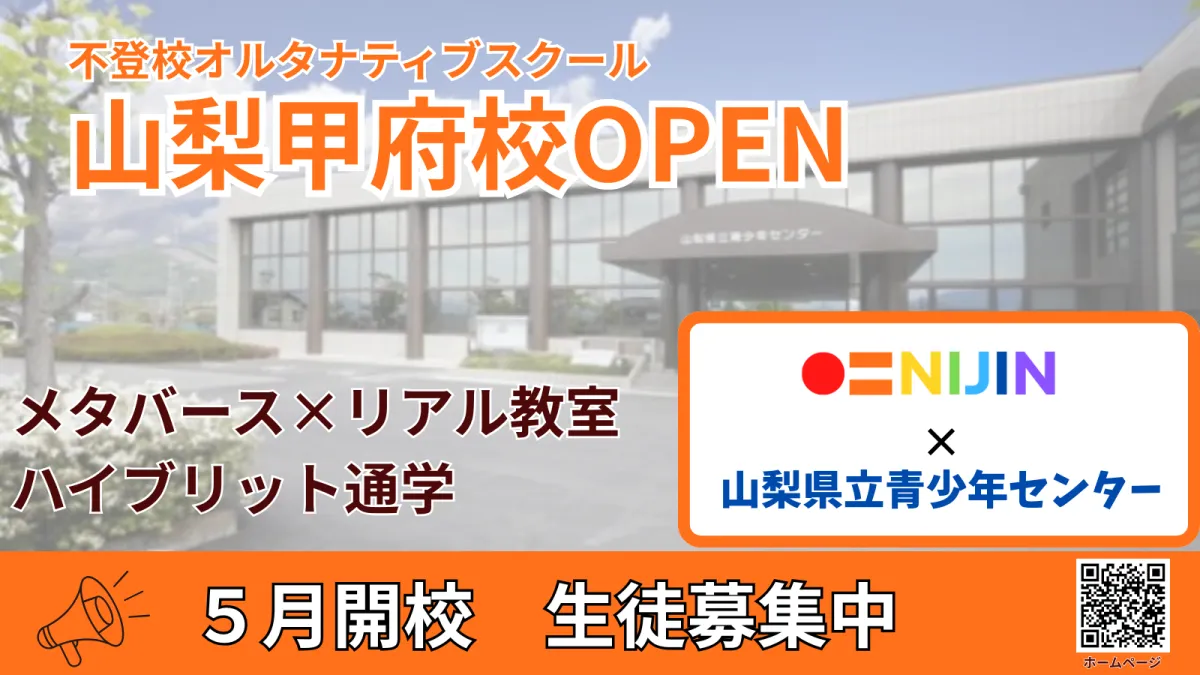 NIJINアカデミー山梨甲府校が、2026年5月に開校します。東京を拠点に事業を展開している株式会社NIJINが運営するこのフリースクールは、山梨県内で初めてのリアル校としての役割を担います。