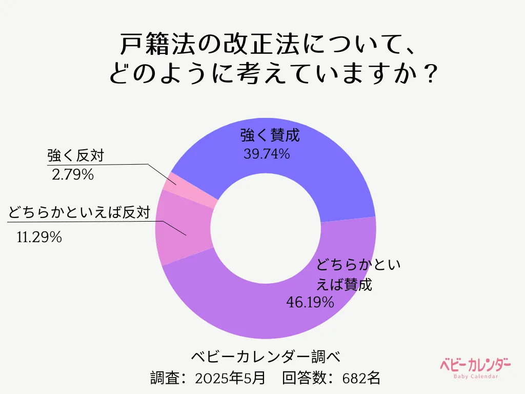 株式会社ベビーカレンダーが実施した調査によると、約85.9%の人々が法改正に賛成と回答しています。彼らの意見には、次のようなものがありました。