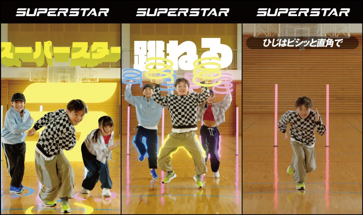 新作のプロモーション動画においては、振付稼業air:manが参加しています。彼らはオリジナルのダンスを通じて、SUPERSTAR®ならではの「跳ね感」や「スピード感」を視覚的に表現。その中には、正しい走り方のポイントである前傾姿勢や肘の角度なども取り入れられており、楽しく学べる内容になっています。