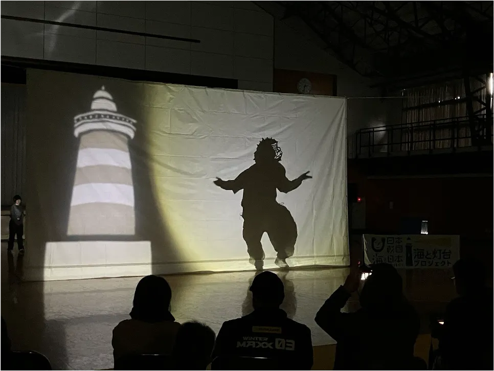 イベントは、秋田県男鹿市北浦の旧男鹿北中学校にて行われ、参加者は影絵作家の川村氏による巨大なキャンバスに描かれる壮大な物語を楽しむことができました。物語は、恐竜が地球を闊歩していた時代から始まり、入道埼灯台がどのように海と人々の関わりを支えてきたのかを描写しました。約5m×7mのキャンバスに投影された影絵は、観客の心に深く残る印象を与えました。