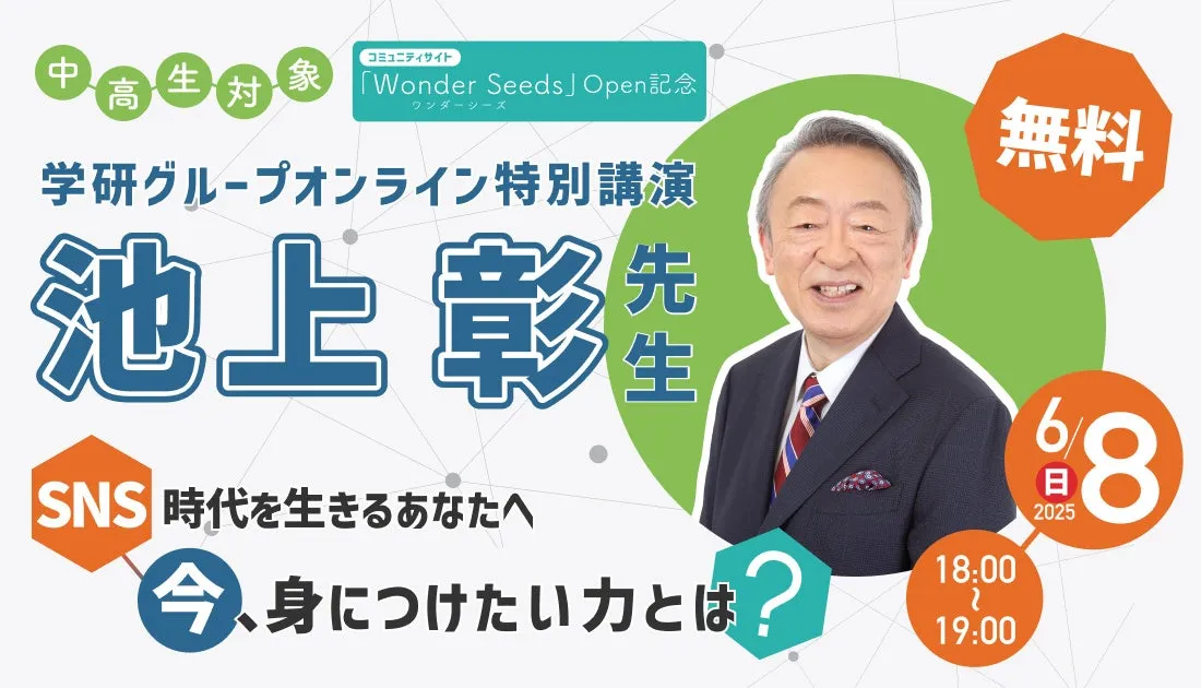2025年6月8日(日)に、著名なジャーナリスト・池上彰氏によるオンライン特別講演が開催されます。テーマは「SNS時代を生きる君たちへ、『今、身につけたい力とは?』」。この講演は、正しい情報の見極め方やSNSの使い方をテーマにした内容となっています。