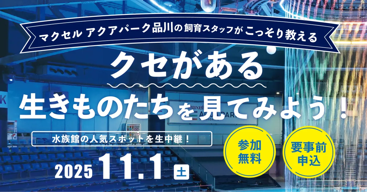 マクセル株式会社が提供する特別イベント、「マクセル アクアパーク品川の飼育スタッフがこっそり教える クセがある生きものたちを見てみよう!」が、2025年11月1日(土)にアート&テクノロジー・ヴィレッジ京都内の「クセがあるスタジオ」で開催されます。このイベントは、子どもたちが飼育スタッフの解説を聞きながら、個性的な海の生きものたちの生態を学ぶ貴重な機会です。