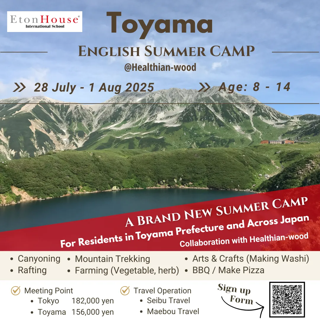 2025年の夏、北陸地域で初めての英語体験型サマーキャンプ「ENGLISH SUMMER CAMP@Healthian-wood2025」が富山県で行われます。このプログラムは、世界で100校以上のインターナショナルスクールを展開するイートンハウスが主催するもので、自然豊かな環境で8歳から14歳の子どもたちを対象に英語を学ぶ素晴らしい機会です。