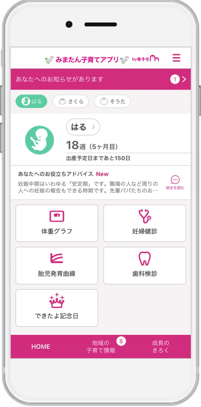 このアプリは、予防接種や健診の管理、地域情報の配信を通して、育児に忙しい親をサポートします。特に、妊娠中から子育てにかけての重要なデータを一元管理できるため、便利かつ安心です。例えば、妊娠の体重管理や子どもの成長曲線をグラフ化してわかりやすく示す機能があり、成長の見える化を実現します。