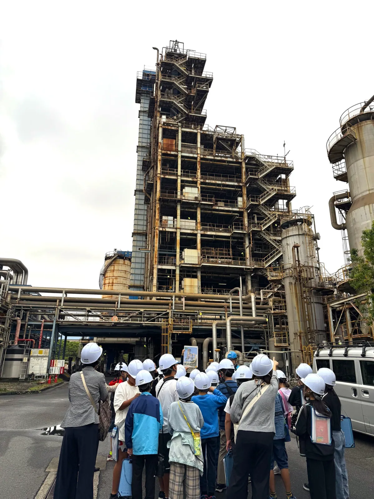 続いて、子どもたちはケミカルリサイクル設備を見学しました。この施設では、使用済みプラスチックが高温でガス化されるプロセスを説明され、実際に家庭から持ち寄ったプラスチックをリサイクル設備へ投入する体験も行いました。「ごみが資源に生まれ変わる」様子を見て、興味を持つ子どもたちの姿が印象的でした。