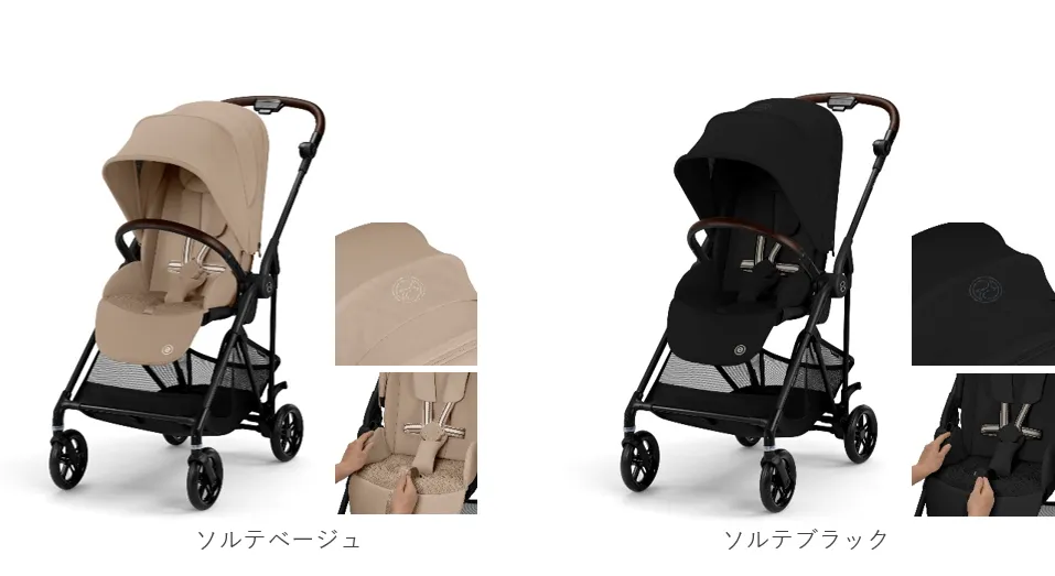 デザイン面でも、「MELIO CARBON」は注目を集めています。刺繍ロゴやブラウンハンドル、さらにはアクセントカラーとしてマルチストライプを施したハーネスベルトが特徴です。これにより、機能的でありながらおしゃれなベビーカーとしても、多くのママたちからの評価を得ています。