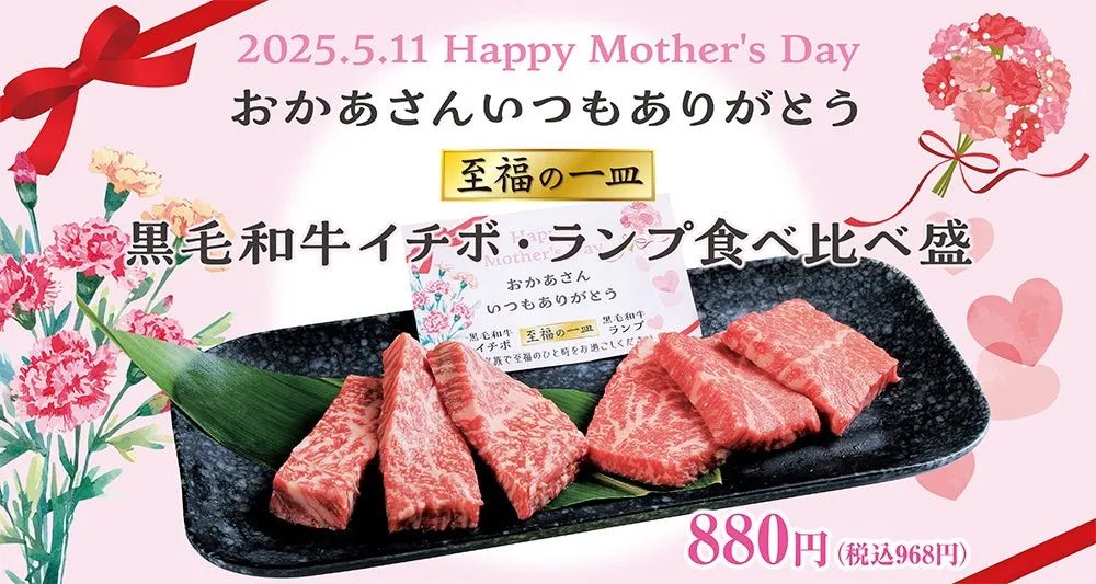そして、5月11日(日)は母の日!お母さんに感謝の気持ちを込めて、特別な一皿をプレゼントしませんか?この日は、黒毛和牛ランプとイチボをお得な価格で提供します。贅沢なお肉を楽しむことで、お母さんに特別な表情を届けることができるはず。焼肉好きのお母さんも、きっと大満足すること間違いなし!