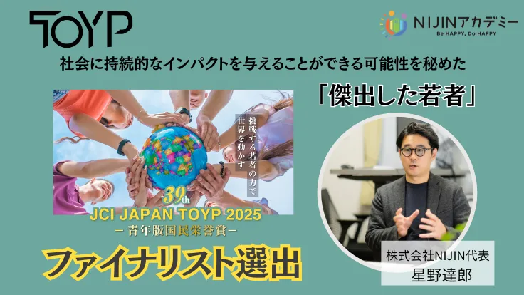 株式会社NIJINの代表、星野達郎が青年版国民栄誉賞であるJCI JAPAN TOYP 2025のファイナリストに選ばれました。この受賞は、彼が運営する不登校オルタナティブスクール『NIJINアカデミー』の取り組みを評価された結果です。今回は、NIJINの活動や星野氏の目指す未来について詳しく見ていきましょう。