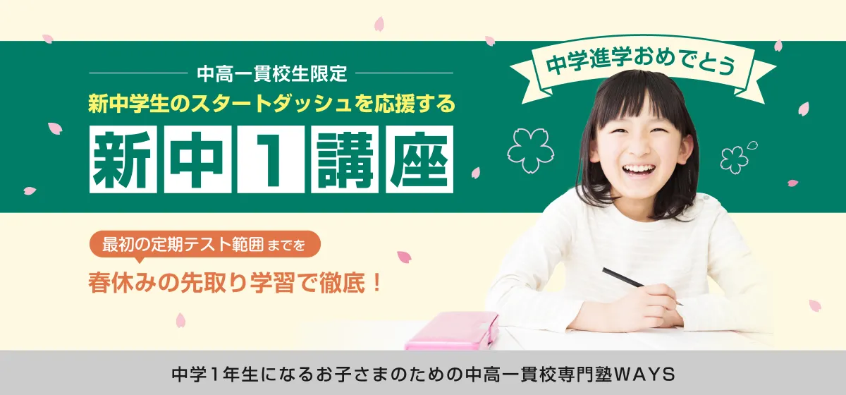 中高一貫校専門 個別指導塾WAYSの新中1講座が始まります!