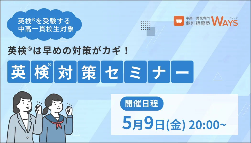 中高一貫校に通うお子さんを持つ皆さん、特に英検®受験を考えている方へ朗報です。2025年5月9日(金)に、無料のオンラインセミナー「英検®対策セミナー」を開催いたします。このセミナーでは、英検®の仕組みや、2024年度からの試験制度の変更点、そして効率的な対策法を分かりやすく解説します。