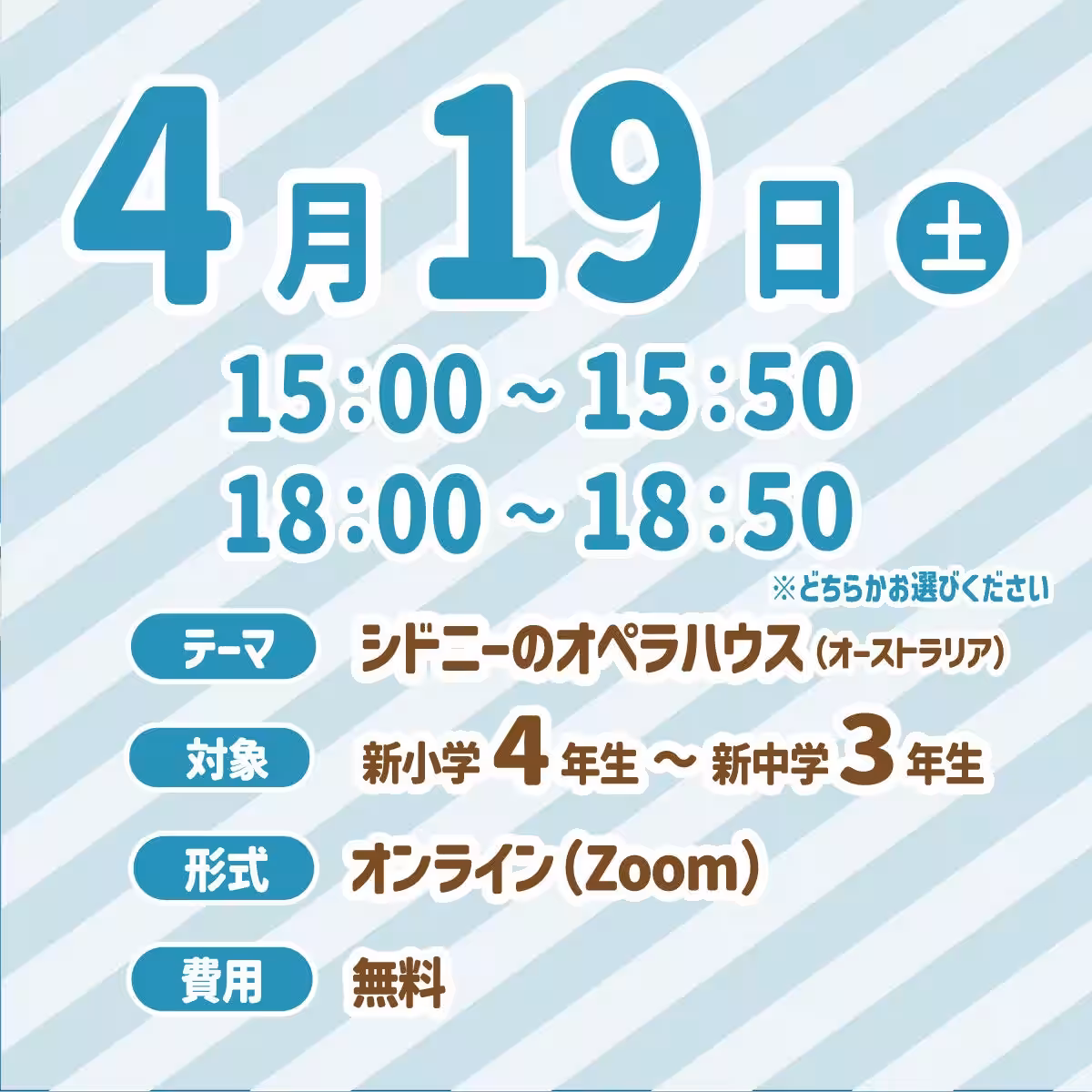 - - 対象学年:新小学4年生~新6年生、新中学1年生~新3年生
