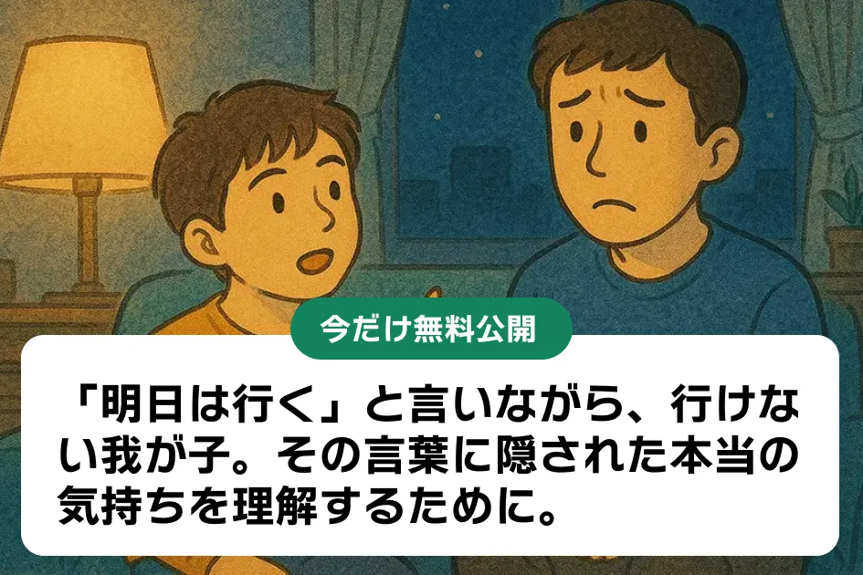 不登校の子どもが「明日は学校に行く」と繰り返し言う姿を見て、親としてはさまざまな感情が交錯します。「本当は行きたいのか、そう思わせているのか」と悩み、心配がつのります。しかし、子ども自身もその言葉にどのような意味を持たせているのでしょうか。