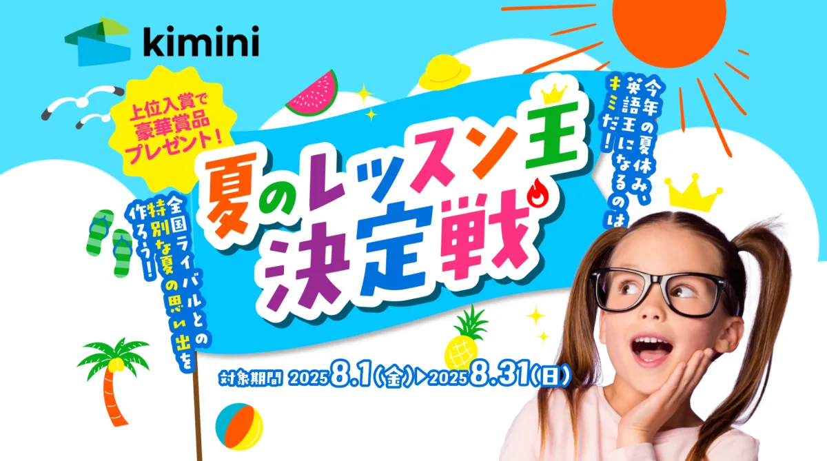 2025年8月1日から8月31日まで、オンライン英会話サービス「Kimini英会話」では特別なキャンペーン「夏のレッスン王決定戦」がスタートします。このイベントは、英会話レッスンを受講した回数によって競うもので、全ての会員が参加可能です。新しく登録した方も参加できるため、この夏に英語学習を始めたい方にはぴったりのチャンスです。