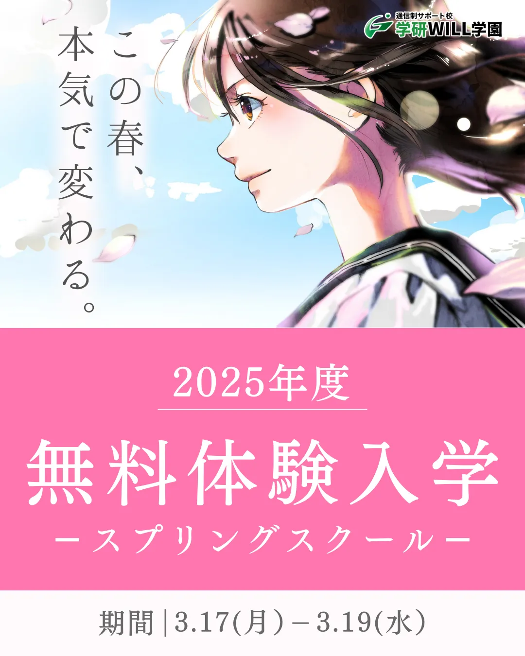 一歩を踏み出す勇気を持ち、新しい学びの場へ飛び込んでみませんか?学研WILL学園でお待ちしております。