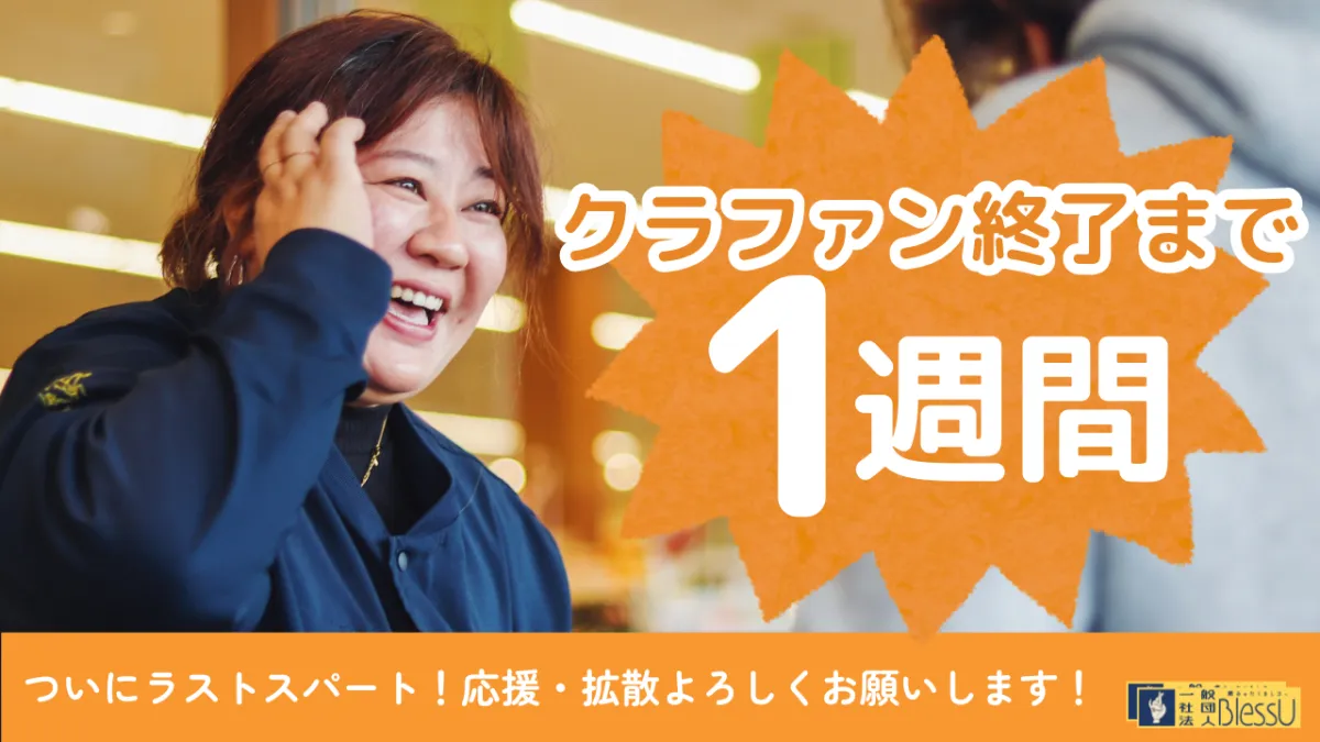BlessUの代表、中居知子は言います。「これまでのご支援に感謝しつつも、まだ目標金額には届いていない現状です。最後の力を貸していただけねば、私たちの求めている未来に届きません。小さな一歩が大きな違いを生むのです。どうか最後まで見守り、応援してください。」