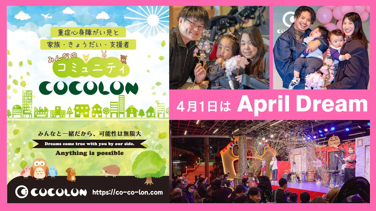特定非営利活動法人EPOが運営するコミュニティ「COCOLON」は、重症心身障がい児とその家族が当たり前に社会参加できる未来を目指しています。2026年4月1日から始まる「April Dream」プロジェクトに賛同し、「重症心身障がい児と家族に社会参加の機会を届け続ける」という夢を再確認しました。