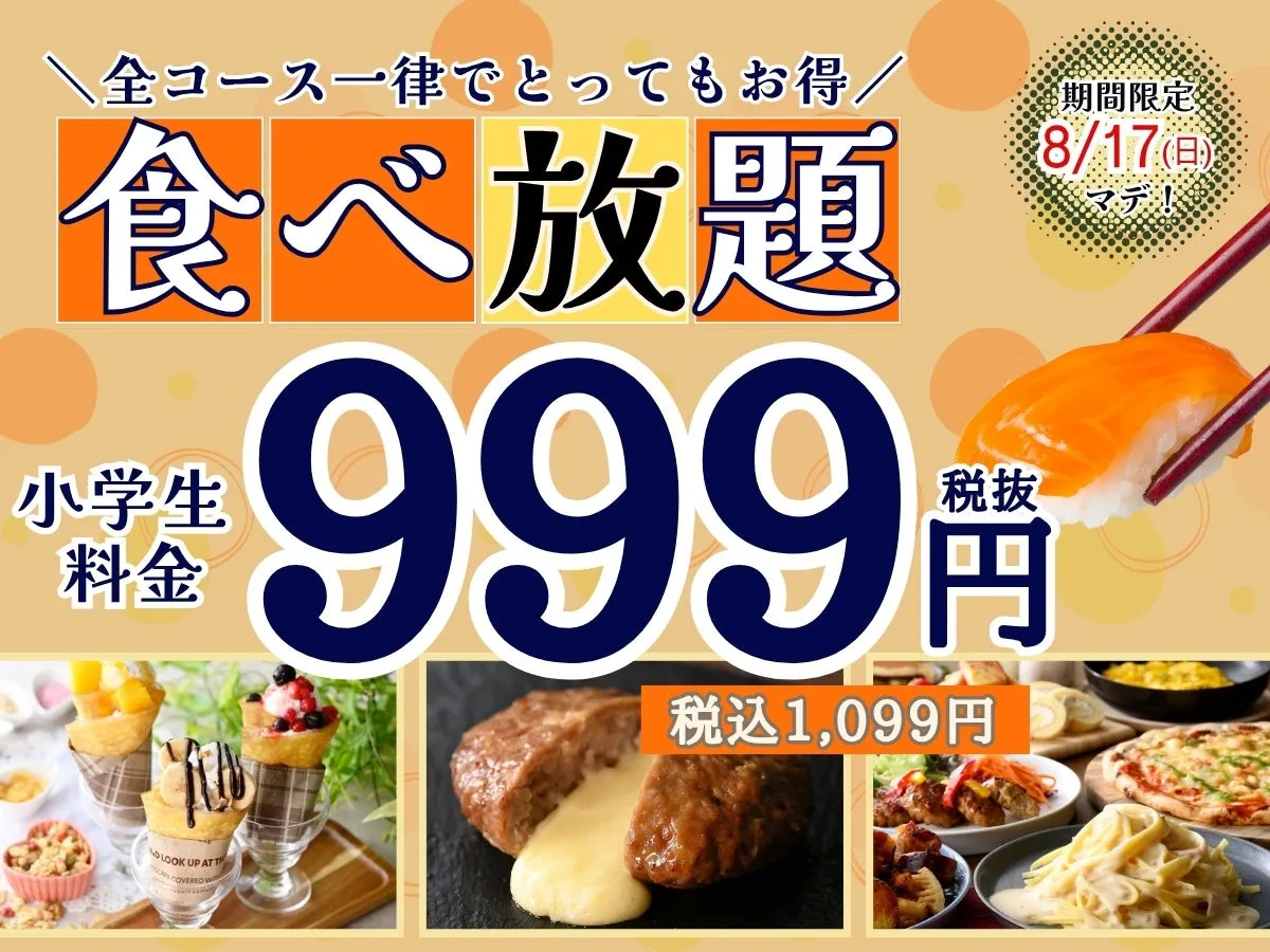 2025年8月9日から8月17日まで、ニラックスブッフェが小学生向けに特別料金のキャンペーンを実施します。全てのコースが税抜999円(税込1,099円)で利用できるこの機会に、家族みんなでお得に美味しい食事を楽しみましょう!