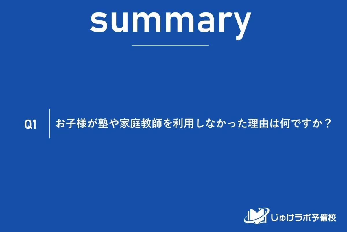 2025年度の高校受験を控えた中学生の中で、塾や家庭教師を利用せずに受験した児童に対して、保護者234名を対象に実施された調査結果が公開されました。この調査は、じゅけラボ予備校によって行われ、「塾や家庭教師を利用しなかった理由」に関する詳細な分析が含まれています。