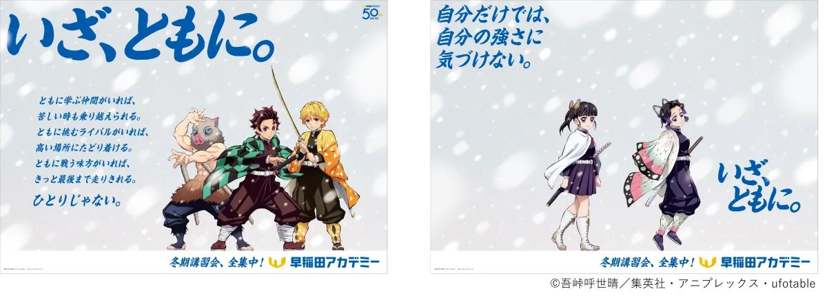 進学塾を運営する株式会社早稲田アカデミーが、アニメ『鬼滅の刃』とのコラボレーション広告を新宿駅や池袋駅で掲出を開始しました。この特別な広告は、冬期講習会の紹介を兼ねており、作中のキャラクターたちの絆を強調する内容となっています。