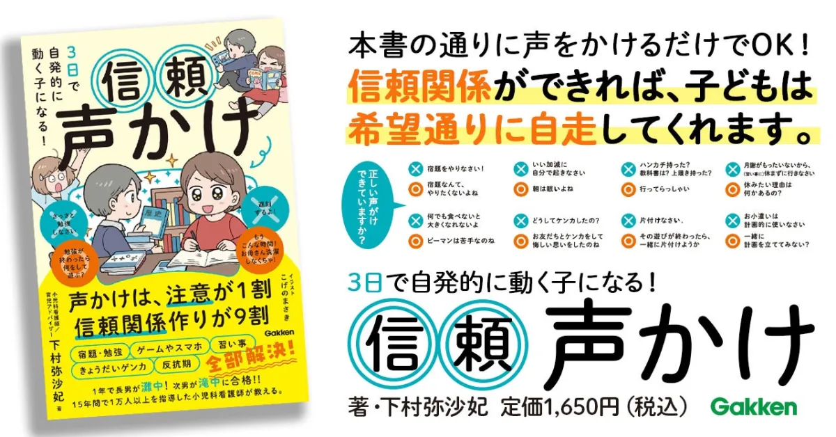 ぜひ、この機会に『信頼声かけ』を学び、家庭内のコミュニケーションを見直してみてはいかがでしょうか。3日後、あなたの子どもが自発的に動いている姿を見つけられるかもしれません。信頼関係を育むことで、親子ともに心地よい毎日を過ごせるようになるでしょう。書籍の詳細や購入はこちらから。