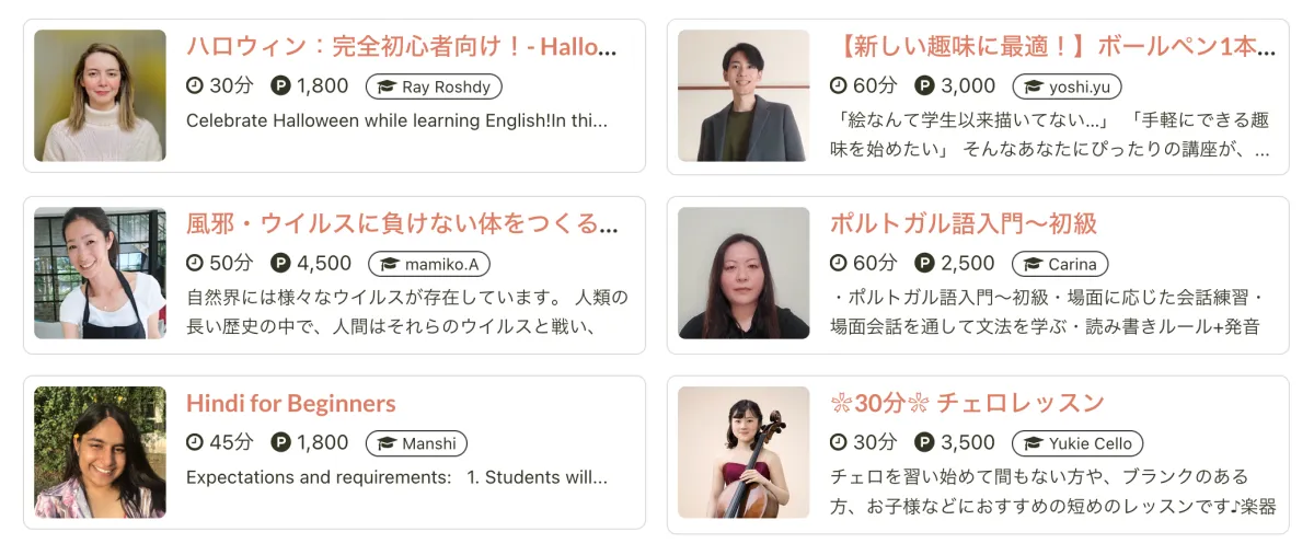 多様な講師陣と出会えるプラットフォーム