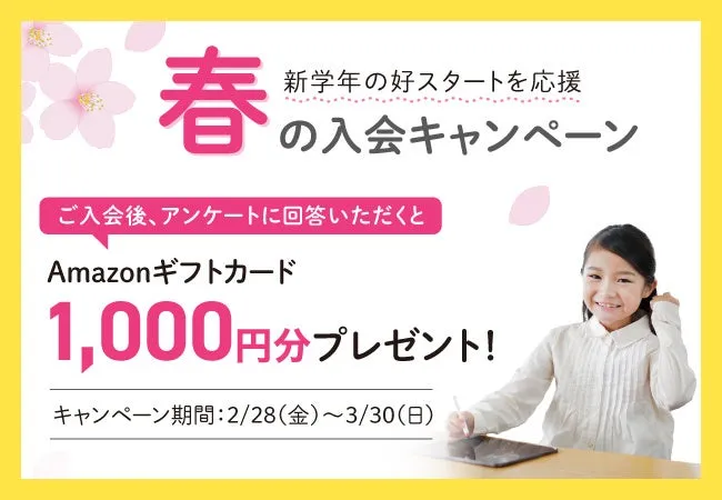 この機会を活用して、おトクに学習を始めてみてはいかがでしょうか?お申し込みは早めに済ませて、春を迎える準備を整えましょう!