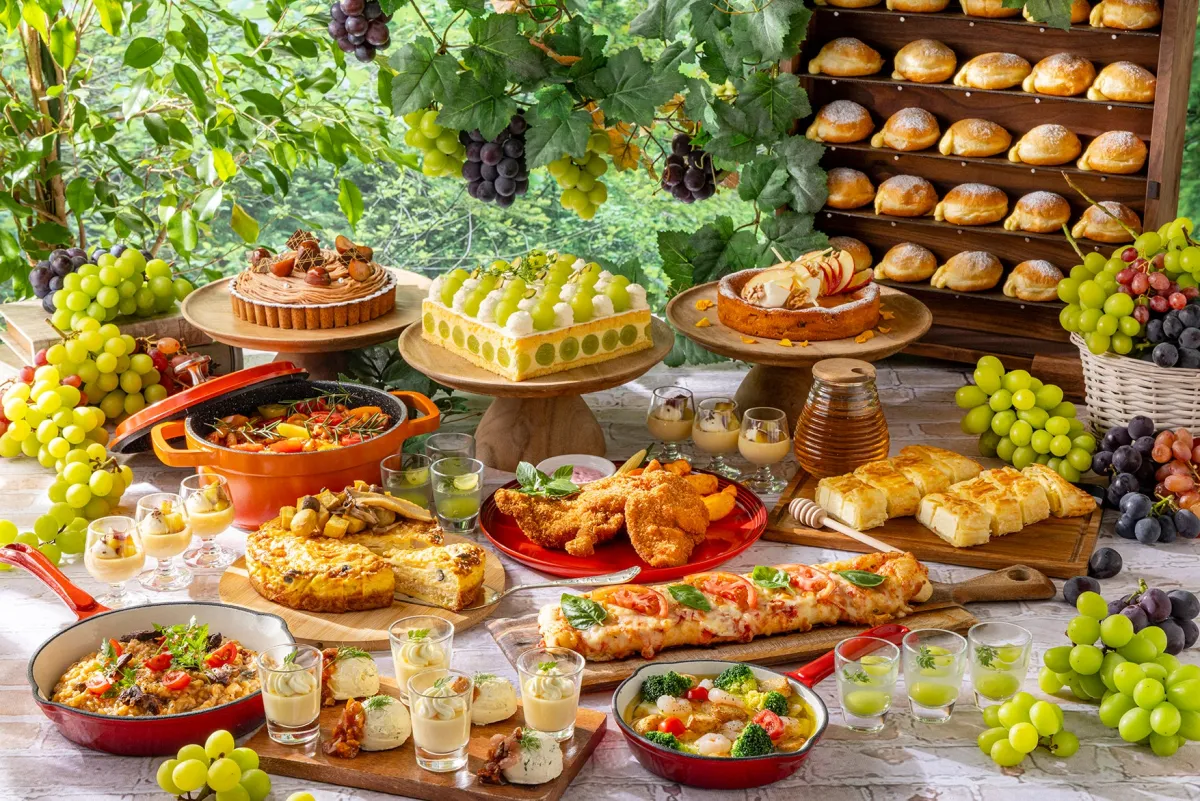 さらに、このフェアの目玉企画として「3種類のぶどう食べ放題」が実施されます。シャインマスカット、巨峰、甲斐路といった多彩な品種のぶどうを一度に堪能できるこの企画は、秋の味覚を存分に楽しむチャンスです。それぞれのぶどうの個性を食べ比べて、秋のフルーツの魅力を満喫してください。