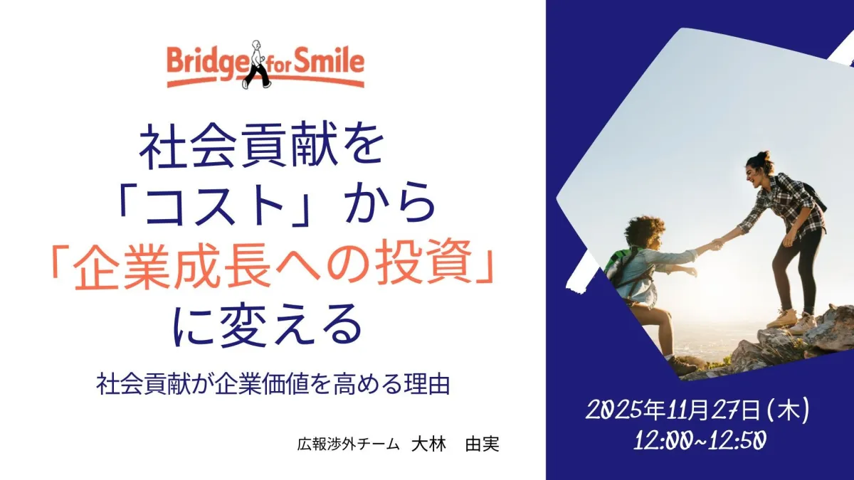 企業が持つ社会貢献への取り組みは、単なるコストと見なされがちですが、実は戦略的な投資として位置づけることができます。この度、認定NPO法人ブリッジフォースマイル(B4S)によるオンラインセミナーが、2025年11月27日(木)に開催されます。このセミナーは、企業のCSR(企業の社会的責任)やサステナビリティ部門の担当者、経営者の方々を対象とし、参加費は無料です。申し込みはPeatixにて、11月26日17時まで可能です。