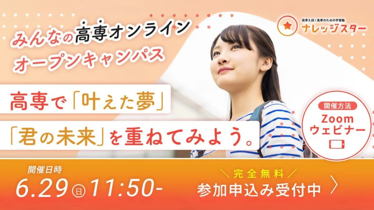 高専受験を考えている小・中学生の皆さん、そしてその保護者の方々に嬉しいお知らせがあります。2025年6月29日(日)に、無料オンラインイベント「みんなの高専オンラインオープンキャンパス」が開催されます。このイベントは、高専進学を目指す方々に向けた貴重な情報の宝庫です。参加は完全無料で、Zoomウェビナー形式で行われるため、自宅にいながら安心して参加することができます。
