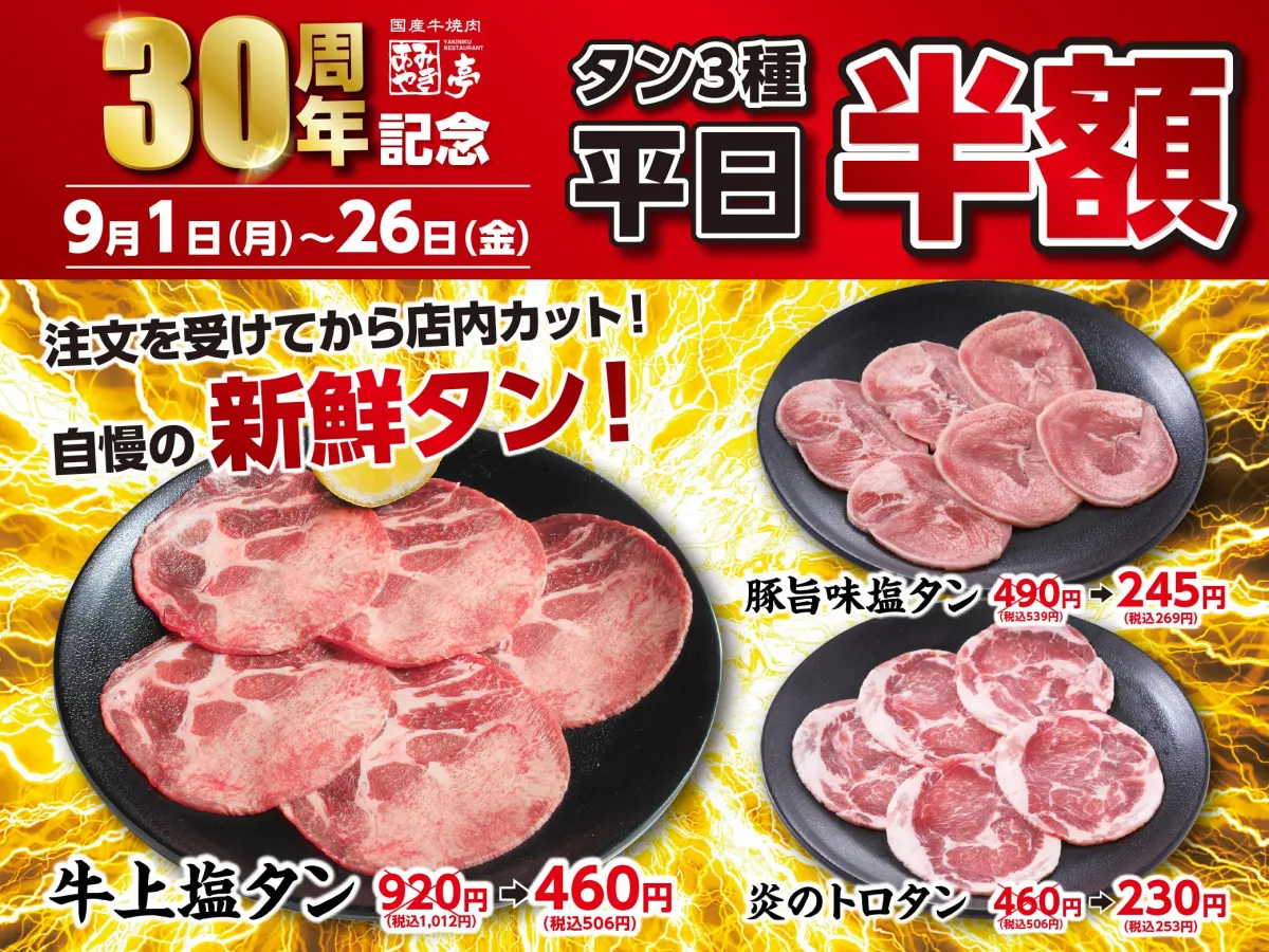 あみやき亭の特別企画!タン半額フェア