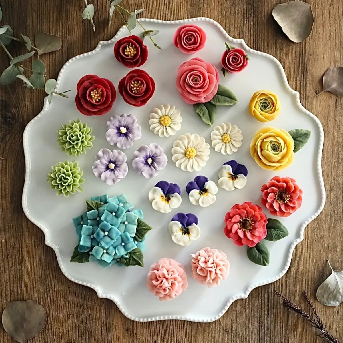 お花絞りは、バタークリームや餡子を用いて花の形を作る、まさにスイーツアートとも言える技法です。その美しさから、多くの人々に愛され、近年ではメディアでも大きく取り上げられるようになりました。美味しさだけでなく、視覚的にも楽しめるこの技術は、受講生に夢を与えています。
