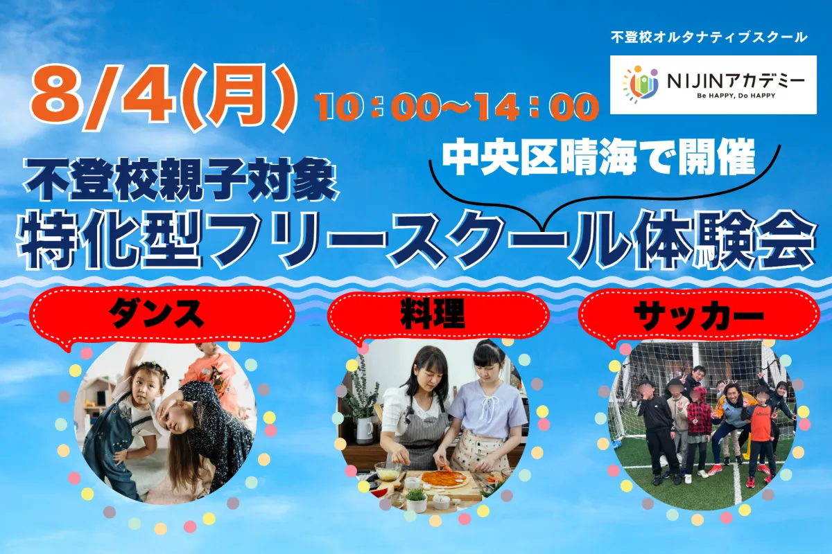 2025年8月4日、東京都中央区晴海のNIJINアカデミーで、特別な体験型イベントが開催されます。このイベントは、不登校や学校に行きづらいと感じる子どもたちを対象に、自分の得意や好きなことを見つけるための貴重な機会を提供します。全国で展開するオルタナティブスクール「NIJINアカデミー」が誇るリアル校が一堂に会して、多様なプログラムを通じて子どもたちの可能性を引き出します。