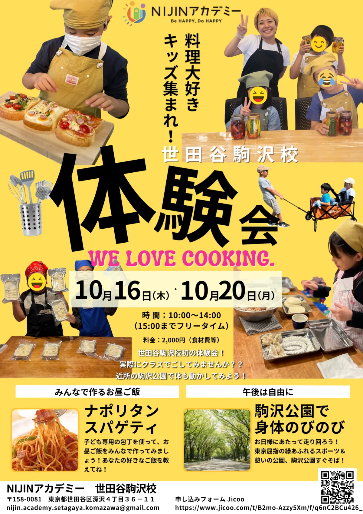 新しい学びの体験をするための機会として、2025年10月16日(月)と20日(木)に、お料理体験会が開催されます。具体的には、ナポリタンを一緒に作り、美味しいランチタイムを楽しむもので、学校説明会や質疑応答の時間も設けられています。