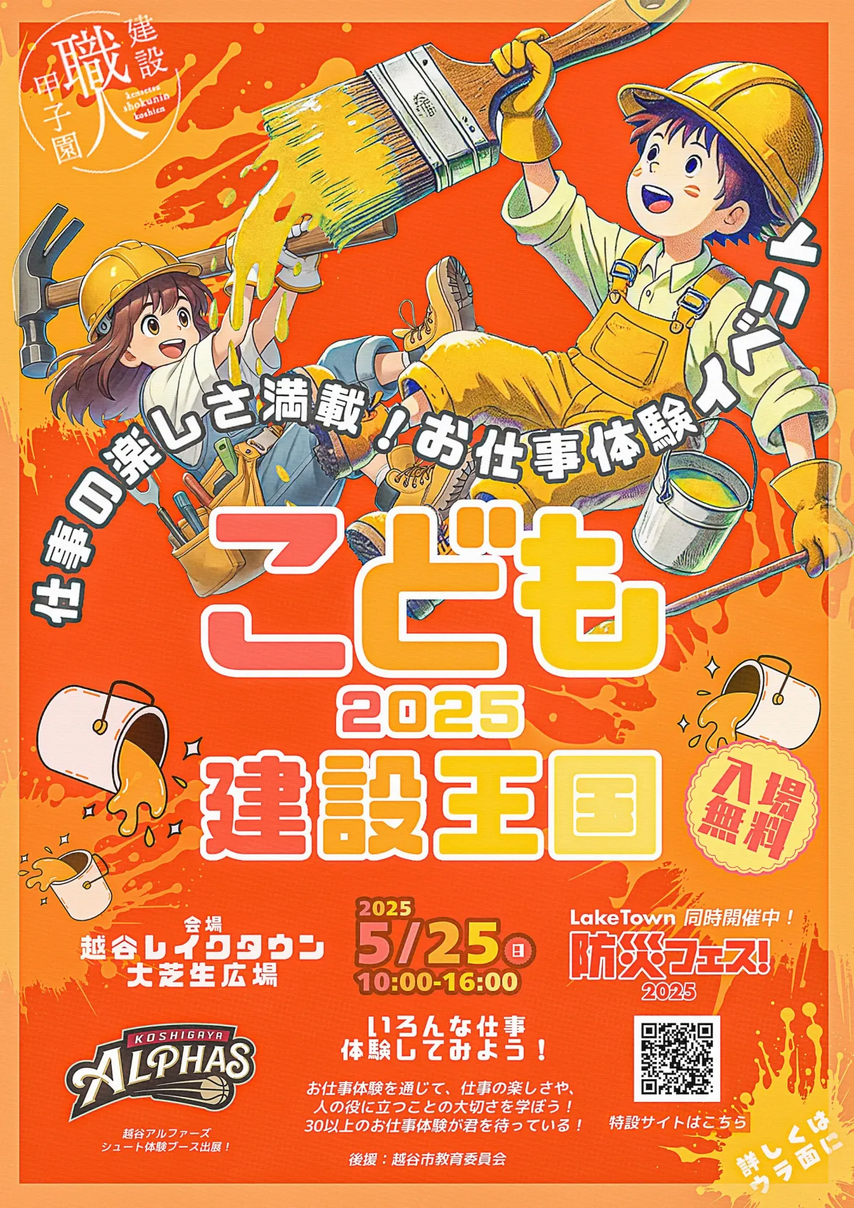 2025年5月25日(日)、埼玉県越谷市の越谷レイクタウン大芝生広場にて「こども建設王国2025」が開催されます。このイベントは、一般社団法人建設職人甲子園が主催し、越谷市教育委員会の後援のもと行われます。これからの時代を担う子どもたちに、多彩な職業体験と楽しさを提供することを目的としています。