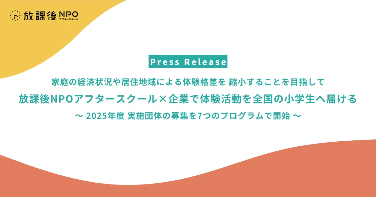 家庭の経済状況や居住地域によって生じる子どもの体験活動の格差に対して、放課後NPOアフタースクールが取り組んでいます。この特定非営利活動法人は、“日本中の放課後を、ゴールデンタイムに。”というミッションの下、全ての子どもたちに平等に体験機会を提供することを目指しています。2025年度も、さまざまなパートナー企業との協力のもと、全国の小学生の居場所に体験プログラムを届ける計画が進行中です。