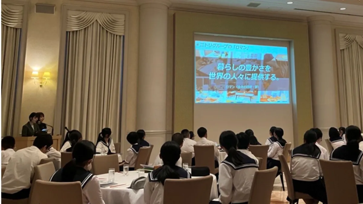シェラトン・グランデ・トーキョーベイ・ホテルでは、修学旅行が探求学習の一環として重要視される中、企業がSDGsについて生徒に紹介する取り組みが増えてきています。ニトリもこの流れに賛同し、他の企業と共に中学生に向けた講話を行いました。このプログラムは、生徒たちが持つ社会問題に対する関心を高め、知識を深めるいい機会となりました。