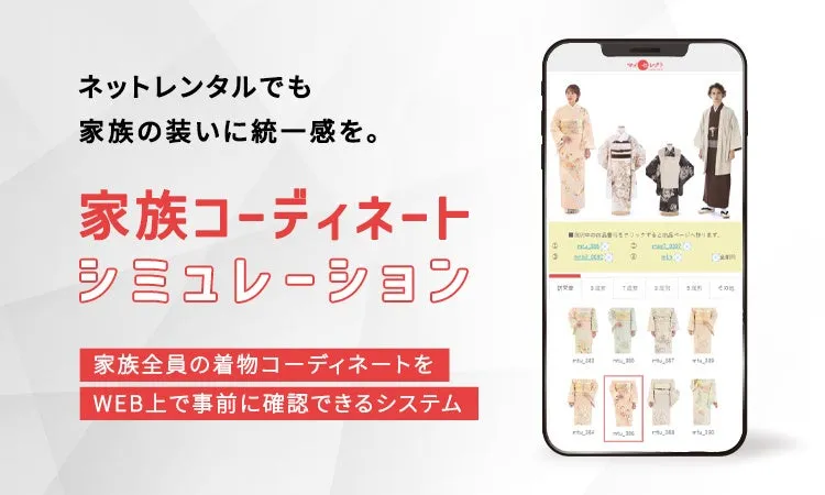 家族みんなで着物を着ることができるマイセレクトの家族コーディネートシミュレーションは、特別な記念日をより華やかに彩ってくれるアイテムです。人生の大切な瞬間を、家族で共有し、心温まる思い出を作るために、ぜひこの機能を活用してみてください。