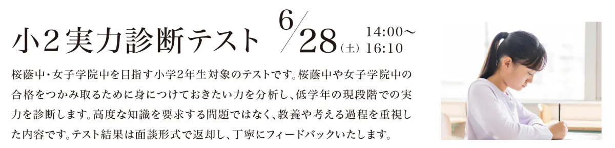 女子中学受験を目指す小学2年生向け実力診断テストのご案内