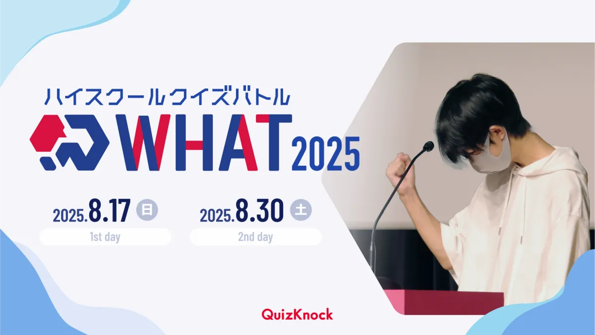 QuizKnockが手がける「ハイスクールクイズバトル WHAT 2025」が、今年も高校生以下を対象にしたクイズ大会を開催することが決まりました。今年で4回目を迎えるこの大会は、昨年の大成功を受けて、新たな参加者たちを迎え入れる準備が整っています。