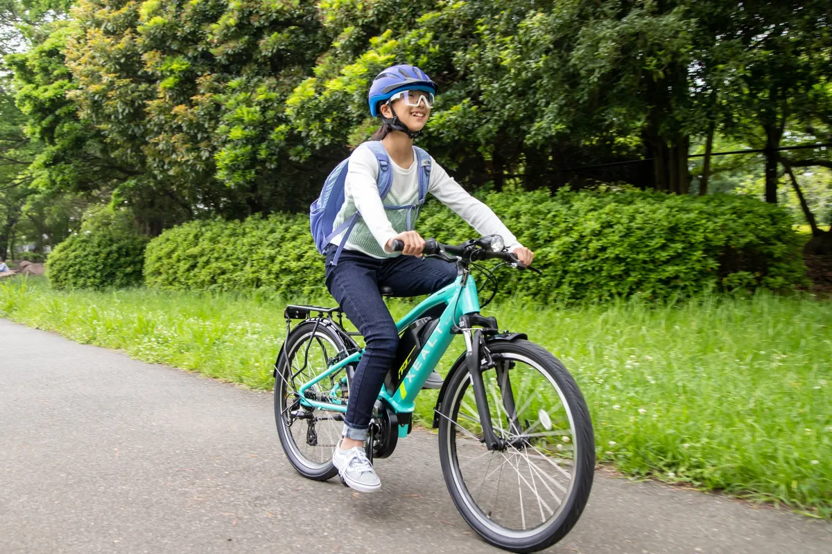 「XEALT SJF」は子ども向けに設計されたeバイクで、家族全員で楽しめるように開発されました。特に、小柄なお子さんでも乗りやすいように、身長135 cm以上から乗車可能なデザインになっています。安全性を考慮したフレームサイズは、停車時に安心して足をつけられる設計です。また、24インチのタイヤを採用し、安定感もばっちり。