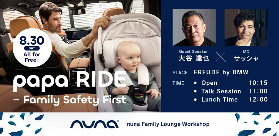 ベビーギアブランド「nuna」が主催する特別なワークショップ「papa RIDE – Family Safety First」が8月30日に開催されます。このイベントは、子育てを楽しむパパに向けた内容で、特に安全に関する知識を深めることを目的としています。家族でのお出かけをより楽しく、安全に楽しむための情報を提供します。