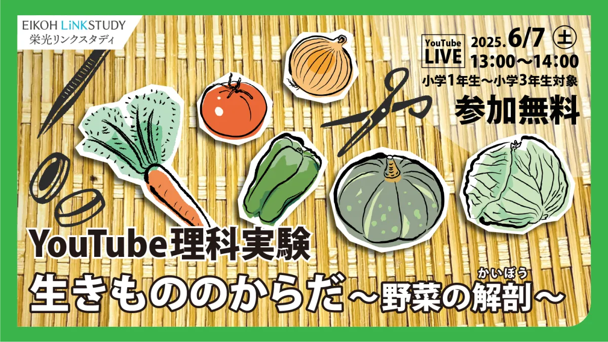 2025年6月7日、株式会社栄光が提供するオンライン進学塾「EIKOH LiNKSTUDY」が、小学1・2・3年生を対象とした無料のYouTube理科実験を開催します。今回は身近な野菜をテーマに、「生きもののからだ~野菜の解剖~」という興味深い内容で、親子での参加が求められています。