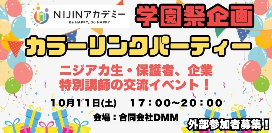 2025年10月11日(土)、東京に位置する不登校オルタナティブスクール『NIJINアカデミー』が学園祭を開催します。このイベントでは、企業や著名人とのネットワーキングが実現し、小中学生たちが新たな学びの機会を得ることができます。子供たちの創造性と挑戦心を大切にするNIJINアカデミーが主催するこの特別な学園祭は、教育の新たな形を提案しています。