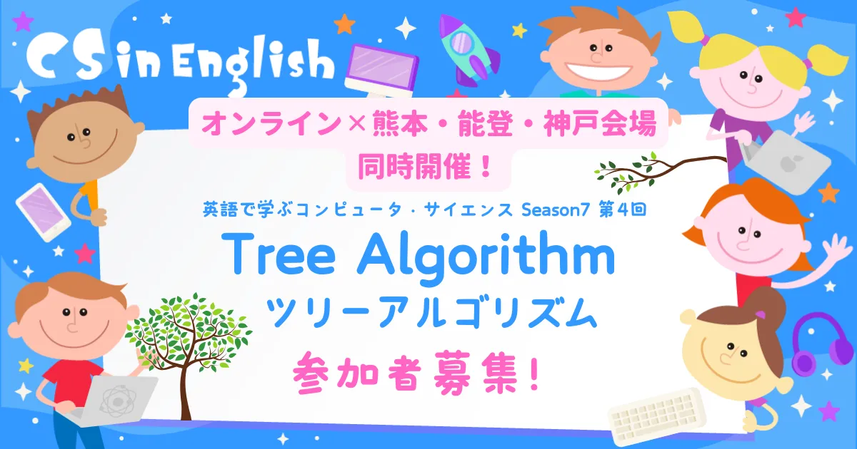 2025年5月11日(日)、日本全国の子どもたちが参加できる特別イベント『CS in English Season 7』の第4回が開催されます。このイベントは、英語を用いてプログラミングを学ぶもので、幅広い地域からの参加を歓迎します。今回のテーマは「Tree Algorithm(ツリーアルゴリズム)」で、日米のエンジニアがボランティア講師として参加.し、子どもたちにプログラミングの楽しさを伝えます。