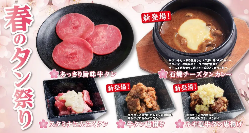 春が訪れ、暖かい季節とともに楽しみたいのが、あみやき亭Plusの「春のタン祭り第2弾」です。牛タン食べ放題を楽しめるこのイベントでは、牛タン好きにはたまらない新メニューが続々登場!